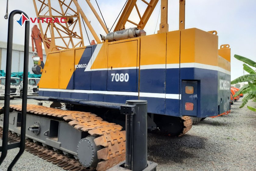 - Cẩu bánh xích kobelco 7080 được trang bị hệ thống thủy lực gồm 3 bơm piston được dẫn động từ động cơ Mitsubishi 6D22CT cho công suất làm việc mạnh mẽ, khả năng tải trọng lên đến 80 tấn, với cần trục dài đảm bảo việc nâng hàng thuận tiện và năng suất cao