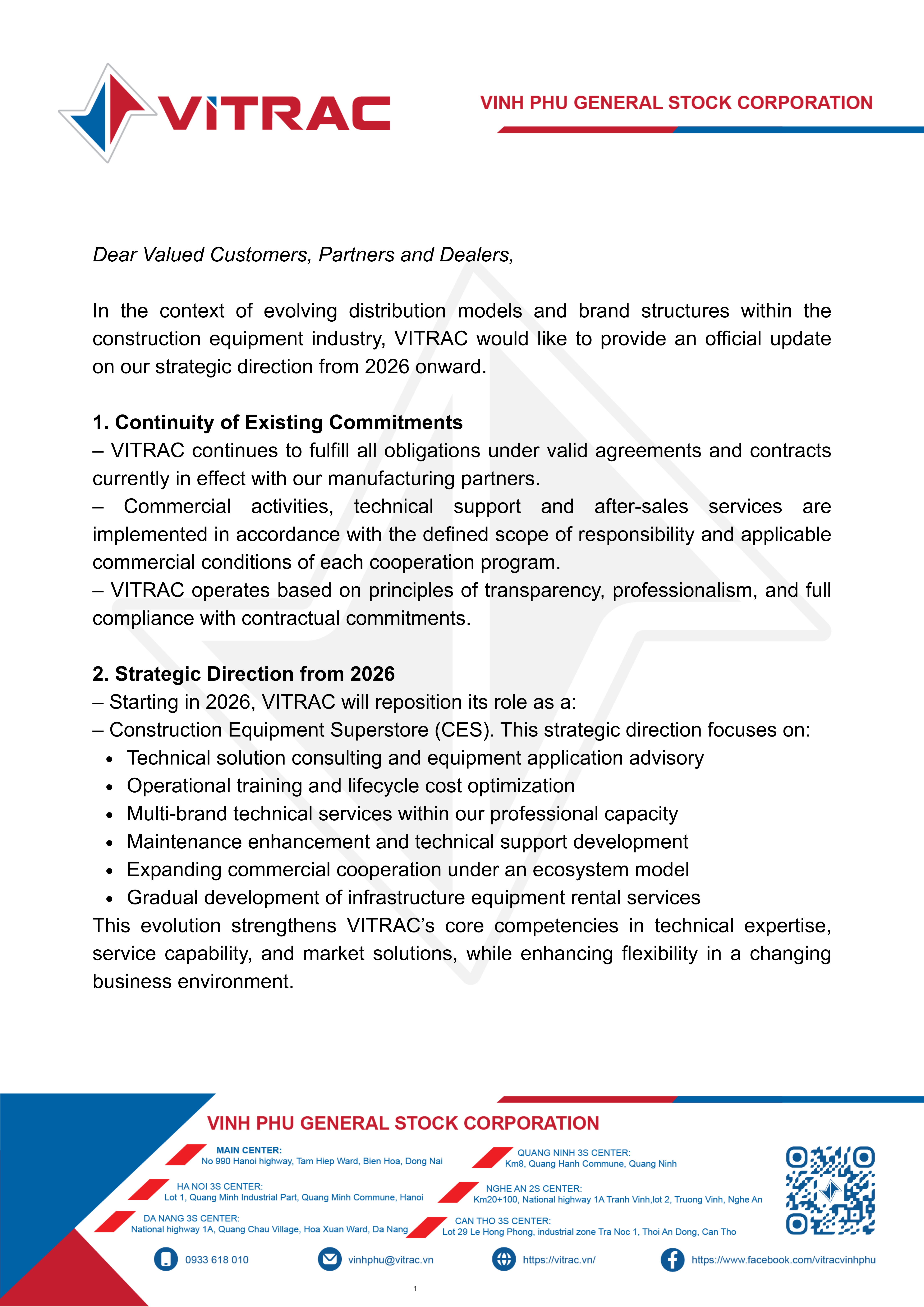 Amid changes in the construction equipment market, VITRAC has announced a new operational direction starting in 2026, aimed at strengthening its technical capabilities and service system. This strategy marks VITRAC’s transition toward a “Construction Equipment Supermarket” model, focusing on delivering comprehensive equipment solutions and technical services to customers and partners.