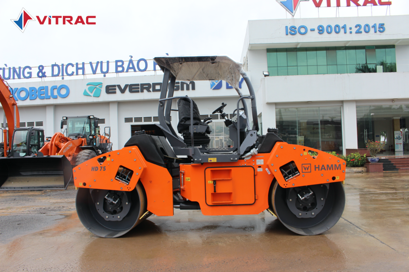 • Lu Hamm HD75 2 trống rung có kết cấu 3 điểm khớp xoay giúp phân bổ đều trọng lượng lu và tạo cảm giác thoải mái ở trung tâm